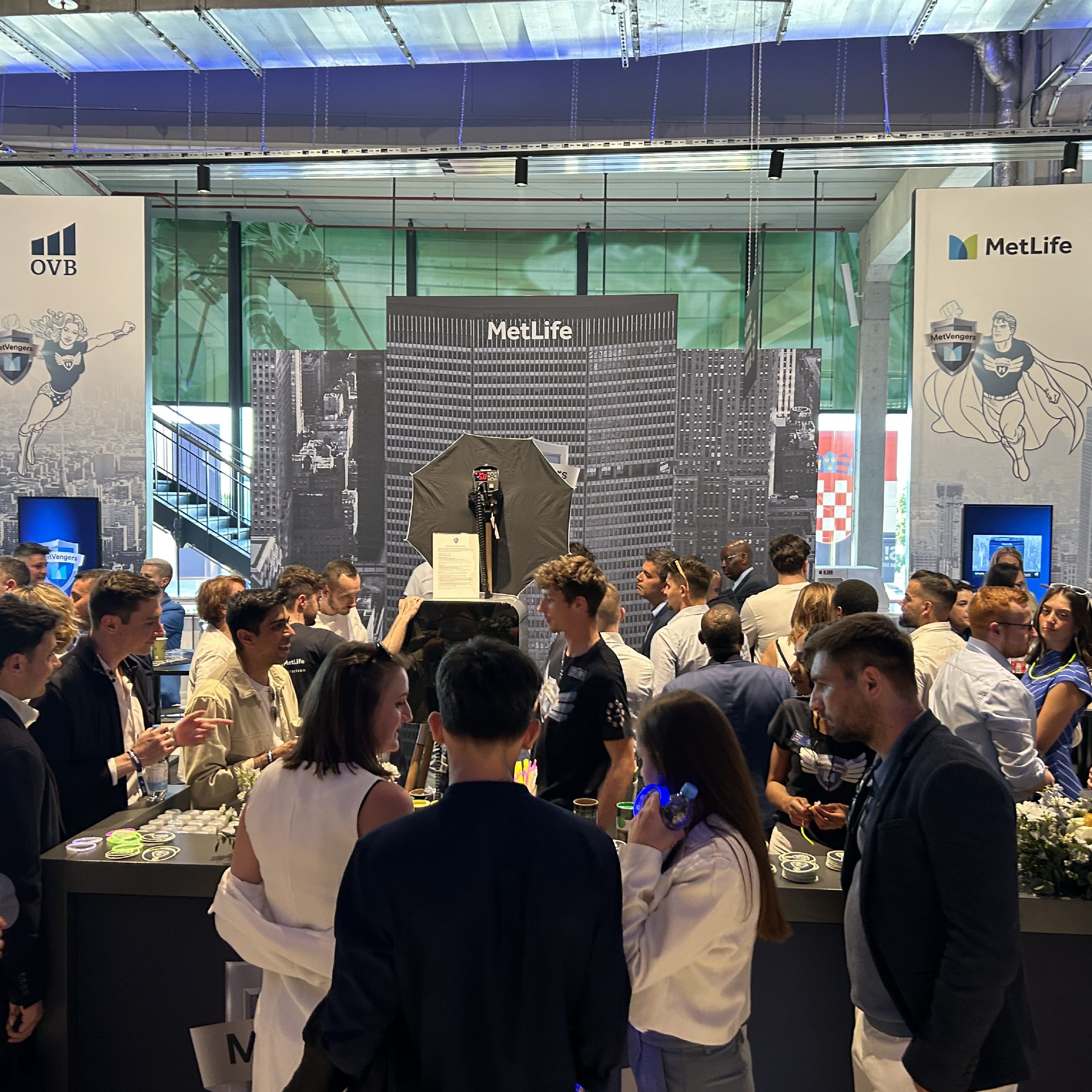 At Srdce Evropy, creativity, production and logistics come together in a single process. We designed an exhibition stand for several European national branches of MetLife on the occation of 55th anniversary of OVB, which brought together approximately 9,000 financial advisors in Düsseldorf. We also ensured its construction and took care of the program for thousands of visitors who participated in our stand’s program over two days. The project also included two tons of promotional items and a unique AI photo booth. After the project ended, we also recycled the exhibition banners and adapted them for display at MetLife’s headquarters.